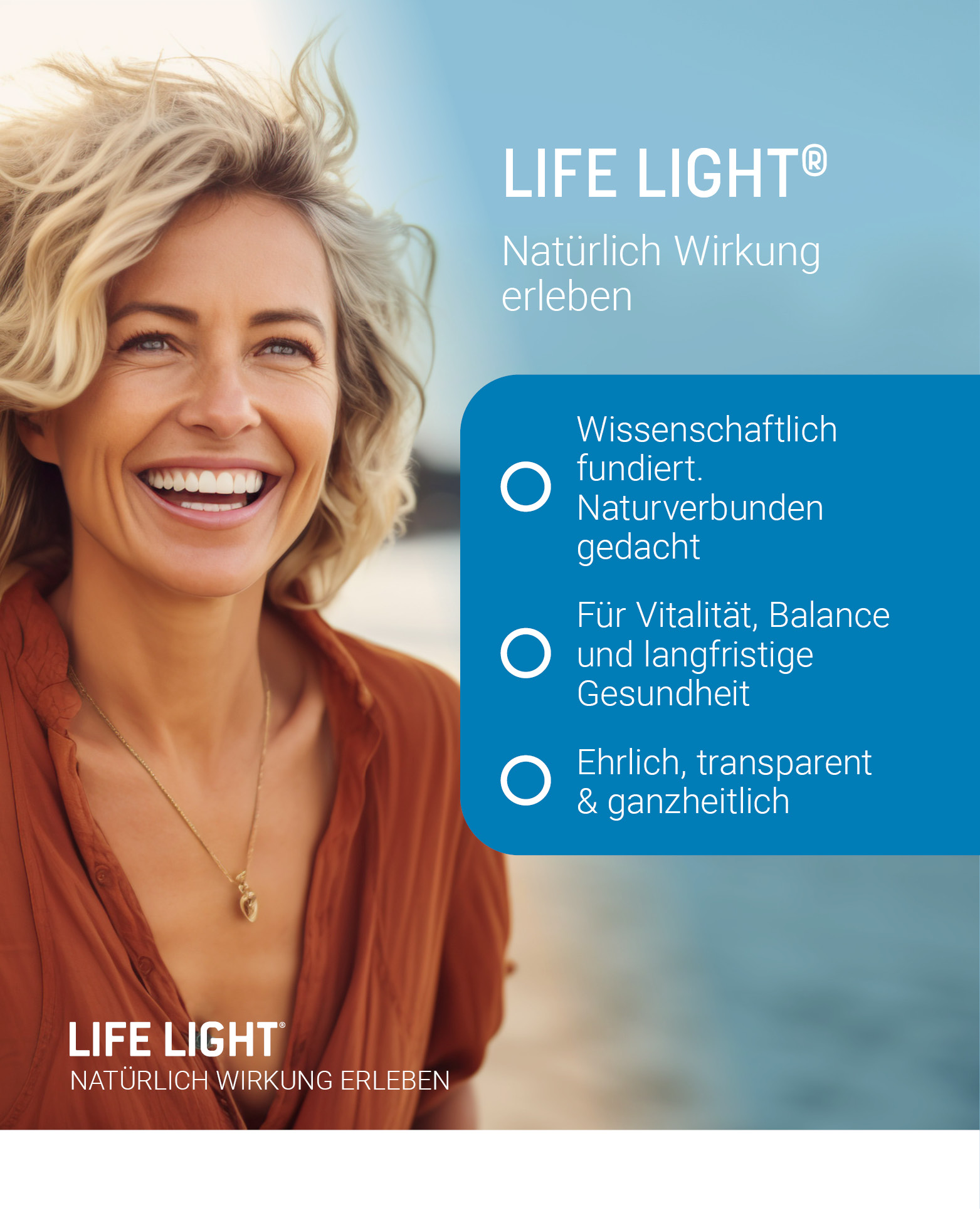Seit über 30 Jahren steht LIFE LIGHT® für ganzheitliche Gesundheit und Premium-Nahrungsergänzungsmittel mit bioaktiven Rezepturen.