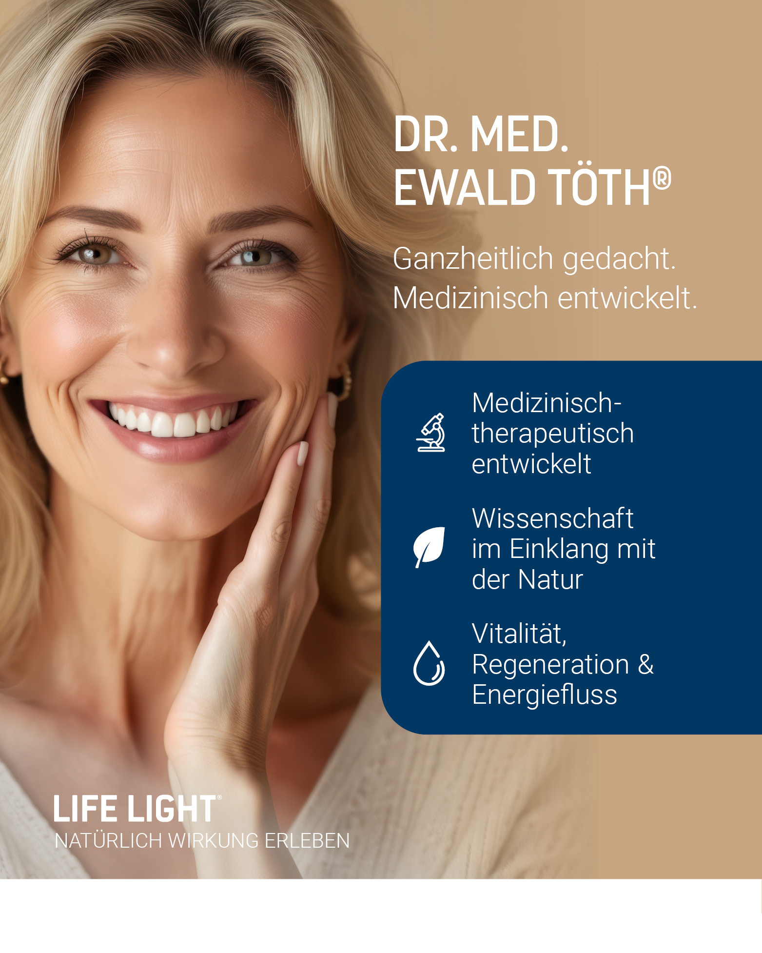 Die Produkte von Dr. Ewald Töth® sind für die langfristige Anwendung geeignet und können täglich eingenommen werden. Eine bewusste und regelmäßige Anwendung kann dazu beitragen, dein Wohlbefinden nachhaltig zu unterstützen. Wenn du unsicher bist, lass dich individuell beraten. Unser freundliches LIFE LIGHT Kundenservice Center ist gerne für dich da!